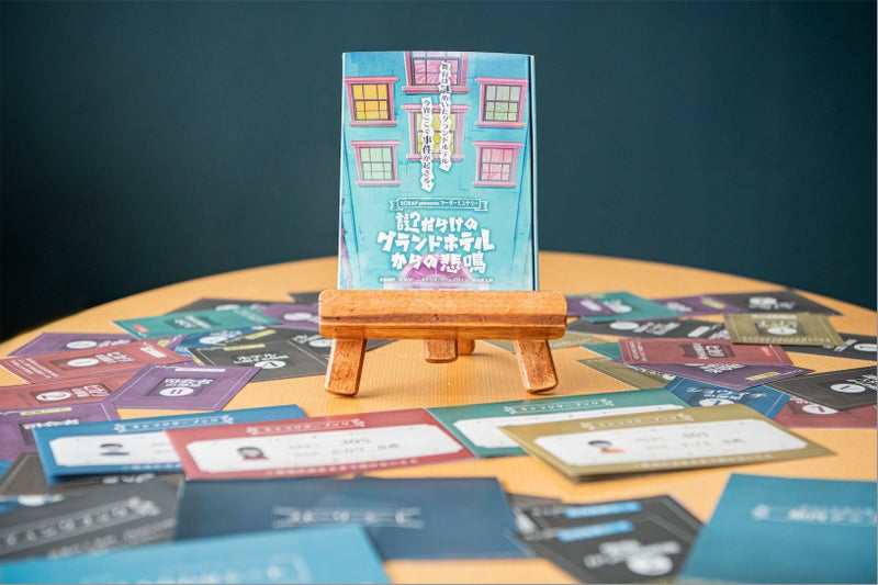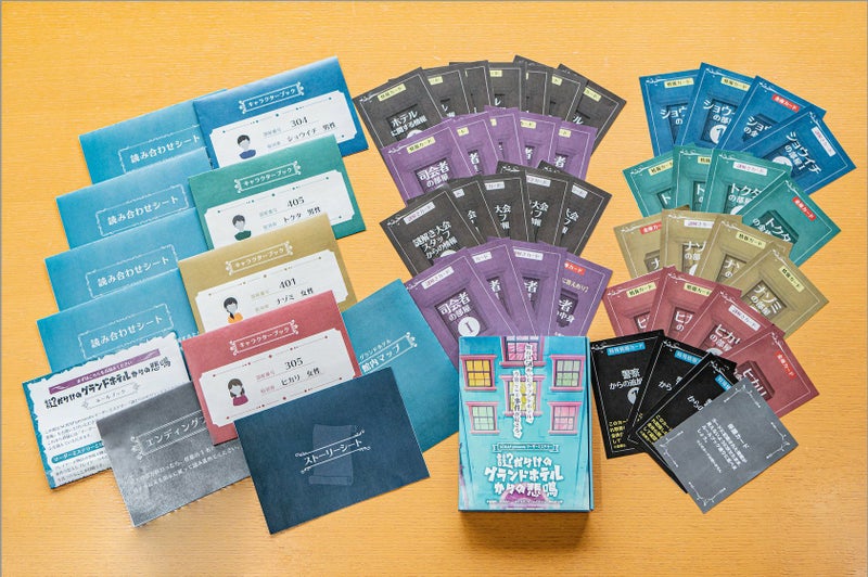 今回の舞台は、謎解き世界大会が行われるグランドホテル。大会の司会者が部屋で倒れている姿で発見された、という場面から物語は始まります。容疑者は、決勝戦の出場者として司会者との会食に招待されていた4名のみ。プレイヤーは一人一役で登場人物を演じながら、それぞれの知っている情報を元に議論し、推理して、この事件の犯人を導き出すことを目指します。